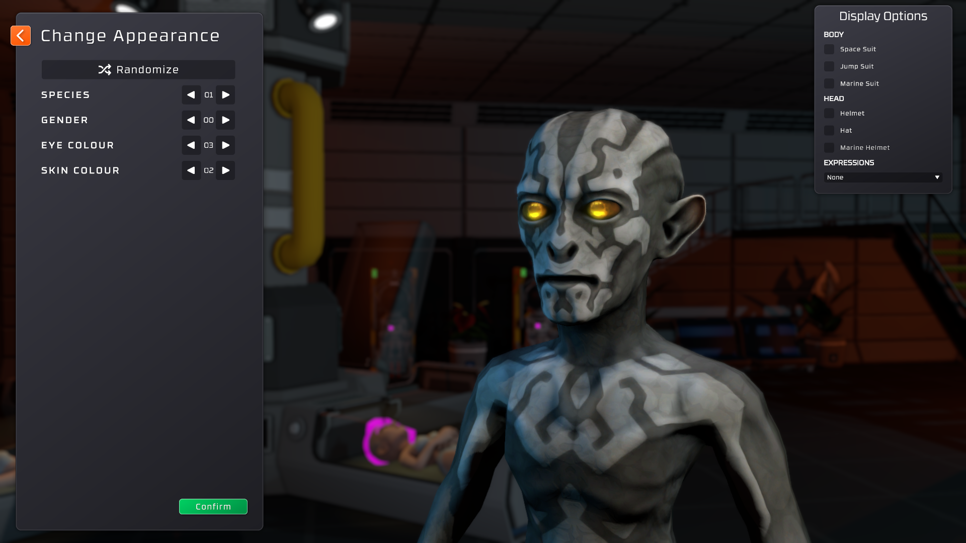 The exact settings for this Zrilian are: Gender 00, Eye Color 03, Skin Color 02.